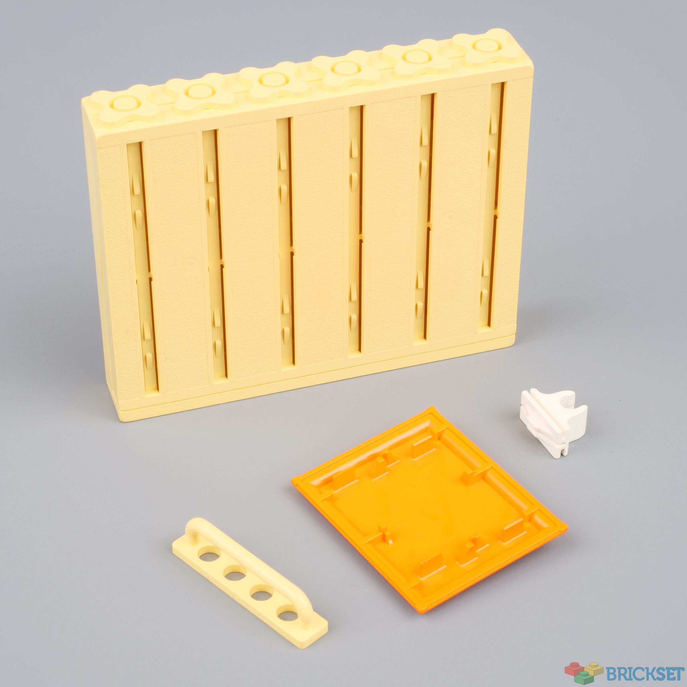 The frame for the stable consists of eight pieces: four pillars and four L-shaped horizontal supports. There were two lengths of these: the small ones in this set, 18 studs long, and some double the length.