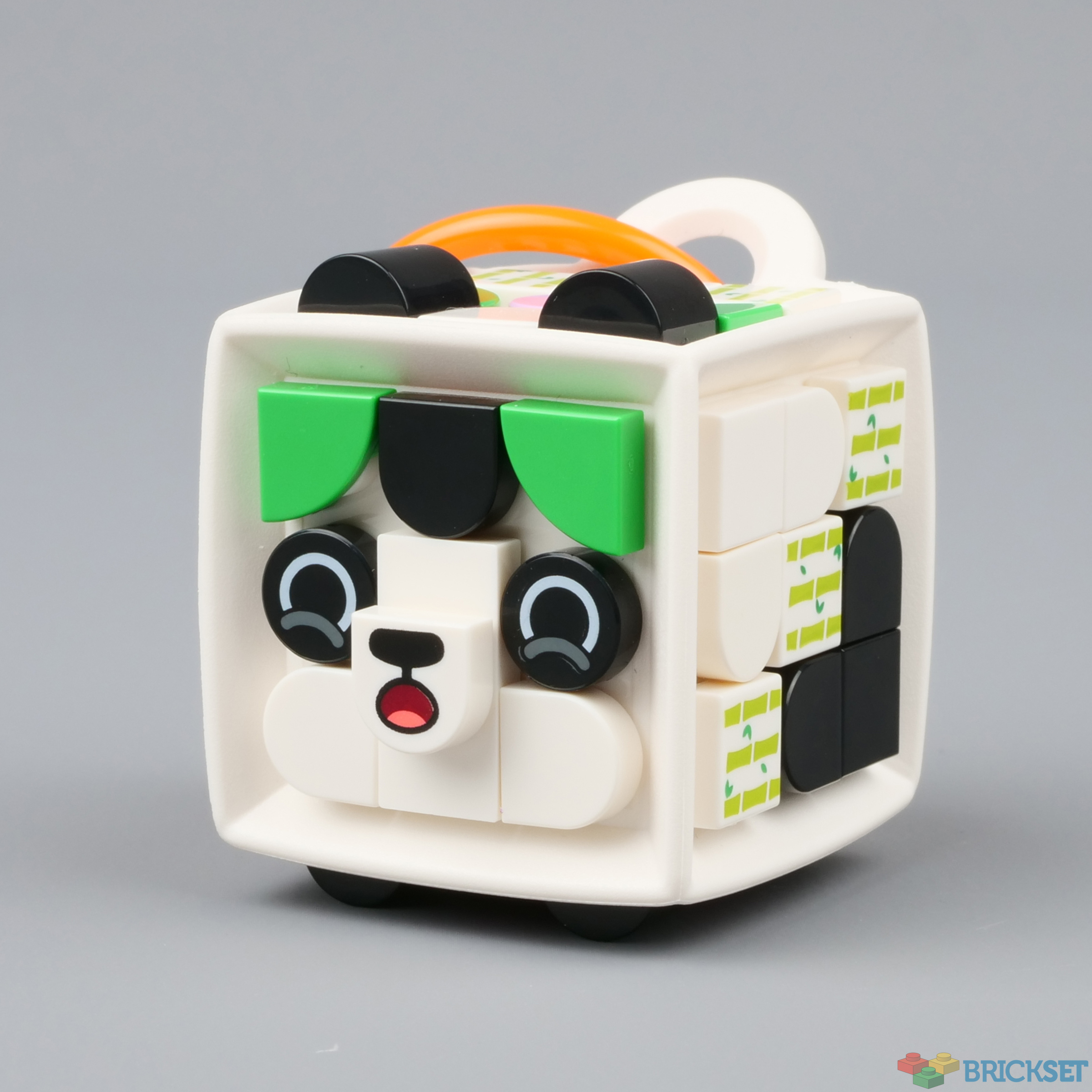The colour scheme of 41930 Bag Tag Panda is of course black and white, but it also contains various shades of green 1/4 circle tiles and some pink round tiles.