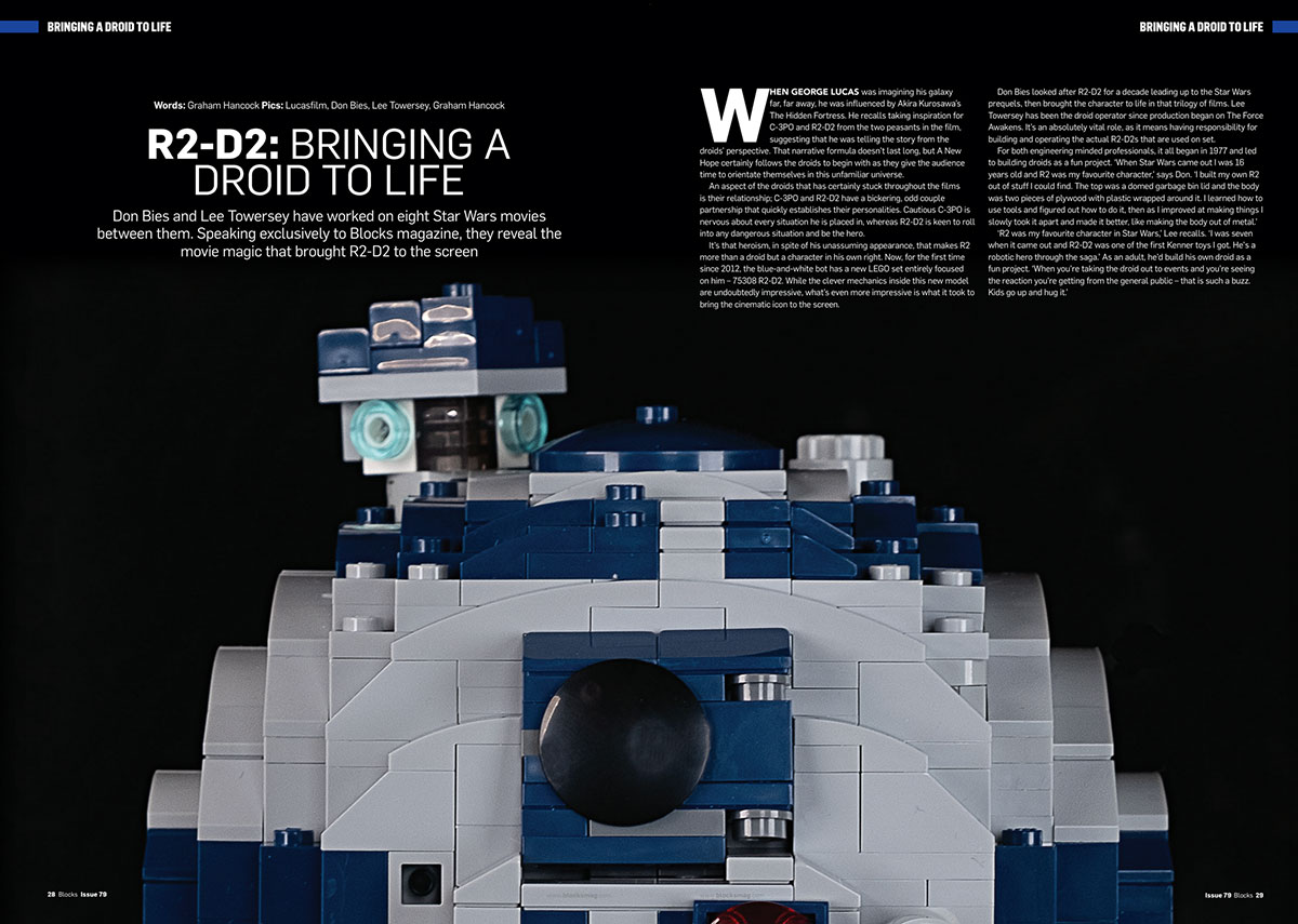 Posted by Huw,Blocks magazine Issue 79 is celebrating the release of the new LEGO Star Wars 75308 R2-D2 by having the talented experts who have brought R2-D2 to the screen share their stories and getting insights from the LEGO set designer.