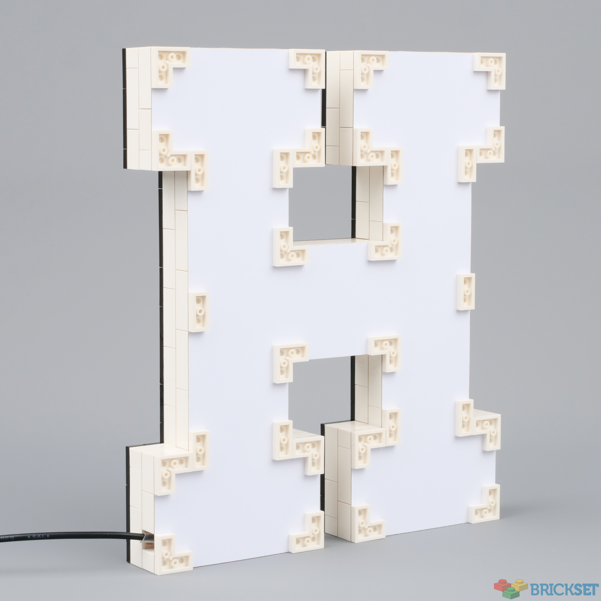 You can buy them ready-made or as a kit, which is slightly cheaper. Mine came ready-made. They are constructed with genuine LEGO pieces: two layers of white bricks finished off with black plates around the edges.
