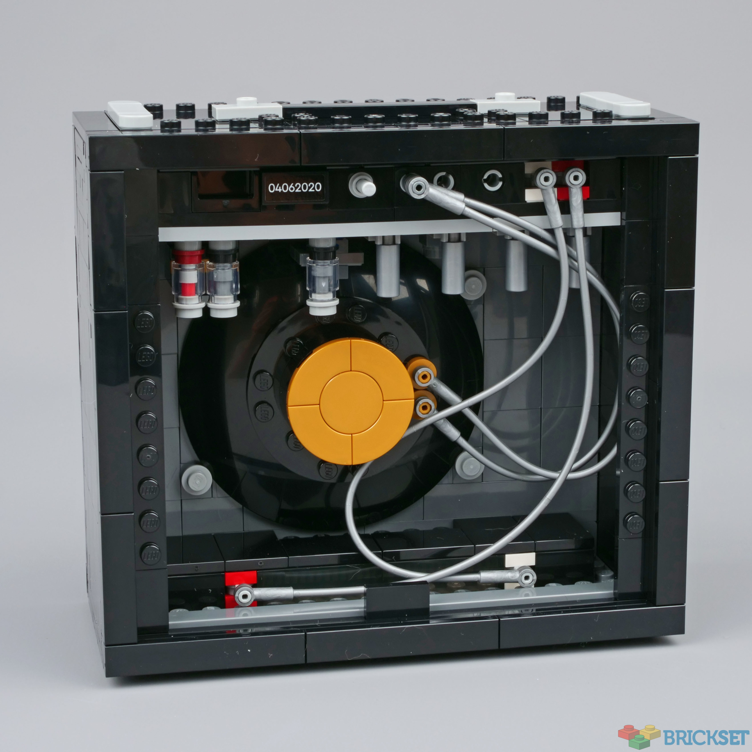 The top of the cabinet can be removed to reveal a circuit board: to my knowledge this is the first time such a thing has been modelled in an official set. The components -- resistors, capacitors and so on -- are represented by various 1x1 pieces in a variety of colours and the end result looks quite convincing.
