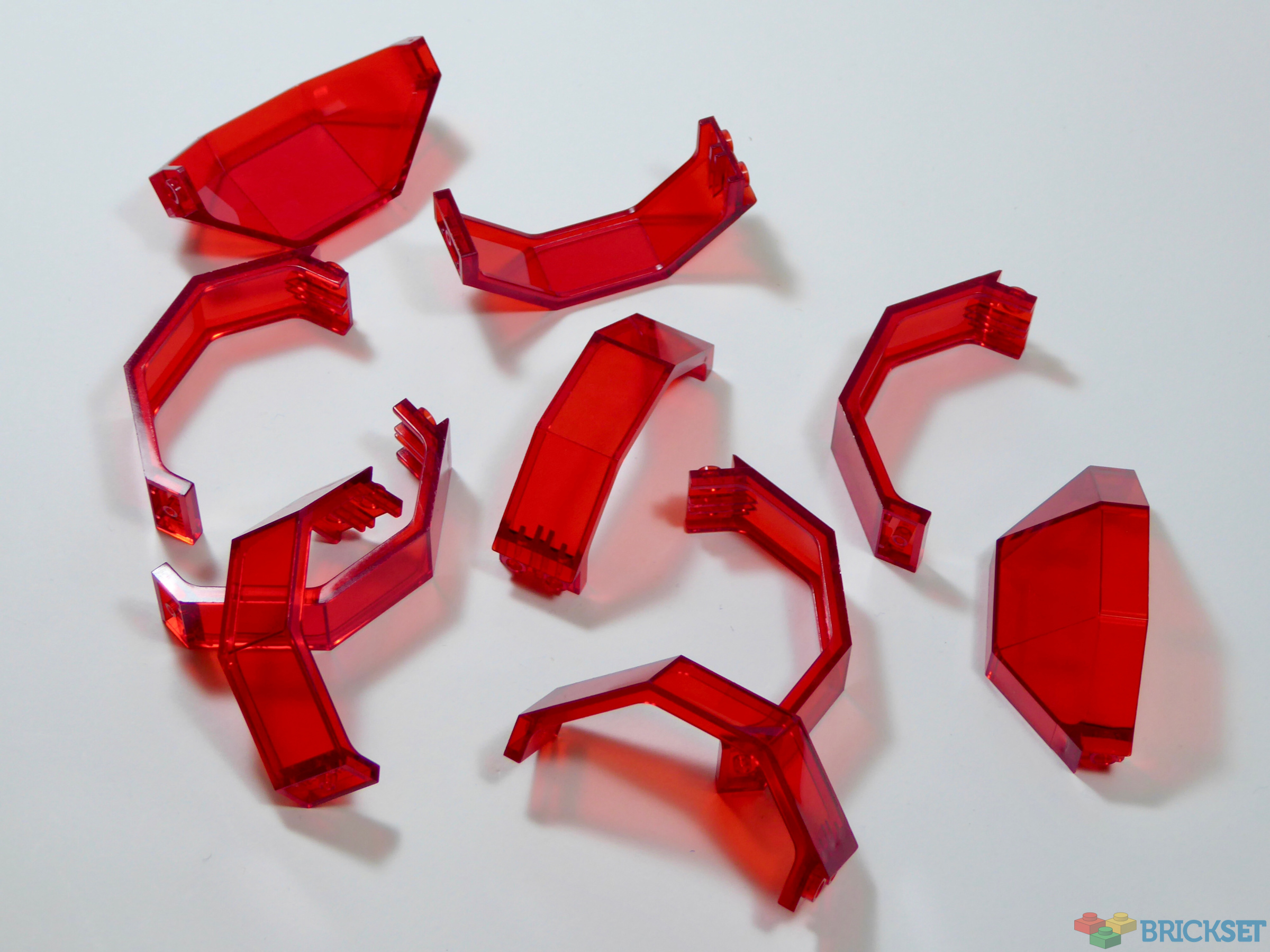 I think what I love most about this set is the colour scheme. It's so *striking*, especially with the absence of pins in various contradictory colours... I don't them I've ever seen a set before that used so few colours, much less so effectively. And those trans-red pieces are NICE.