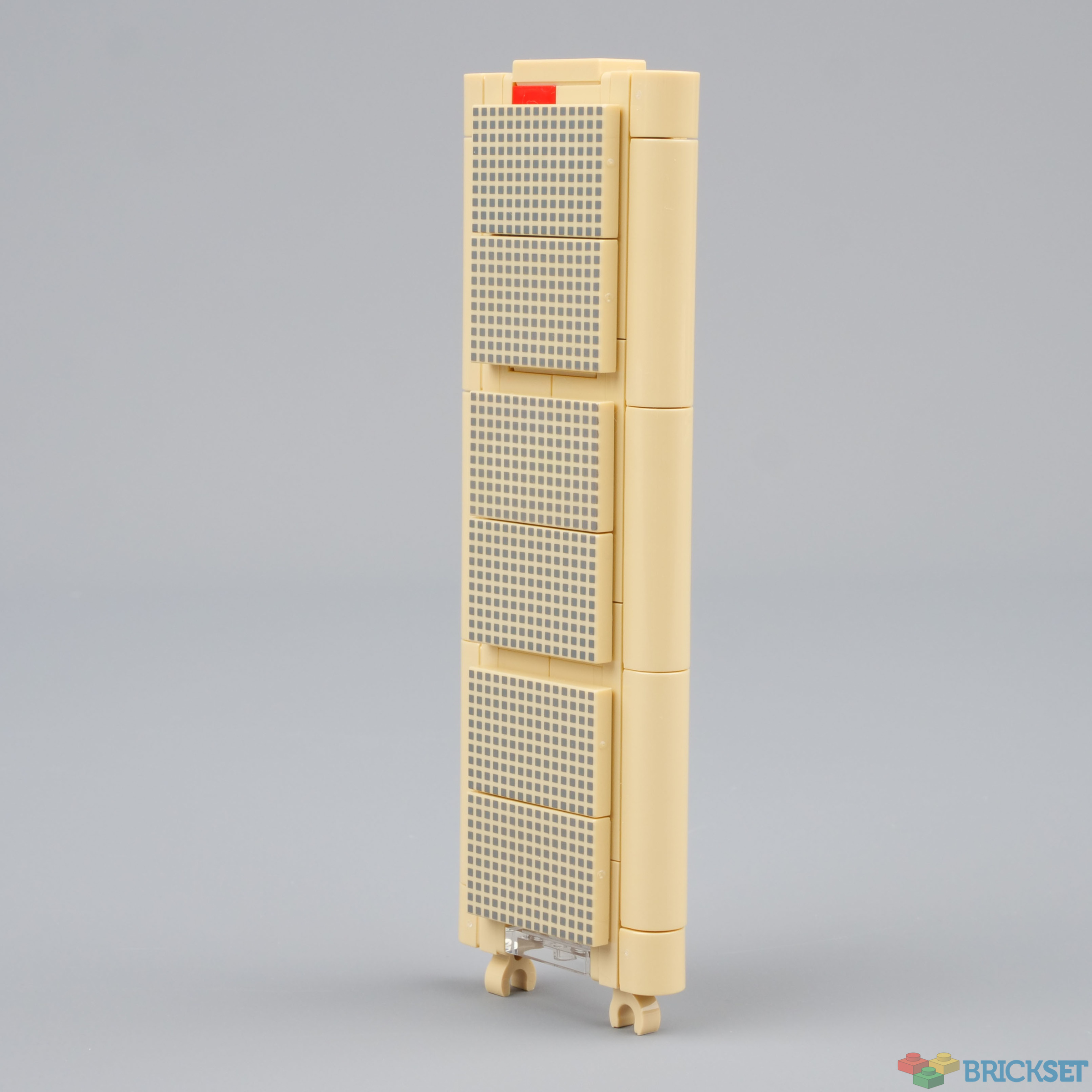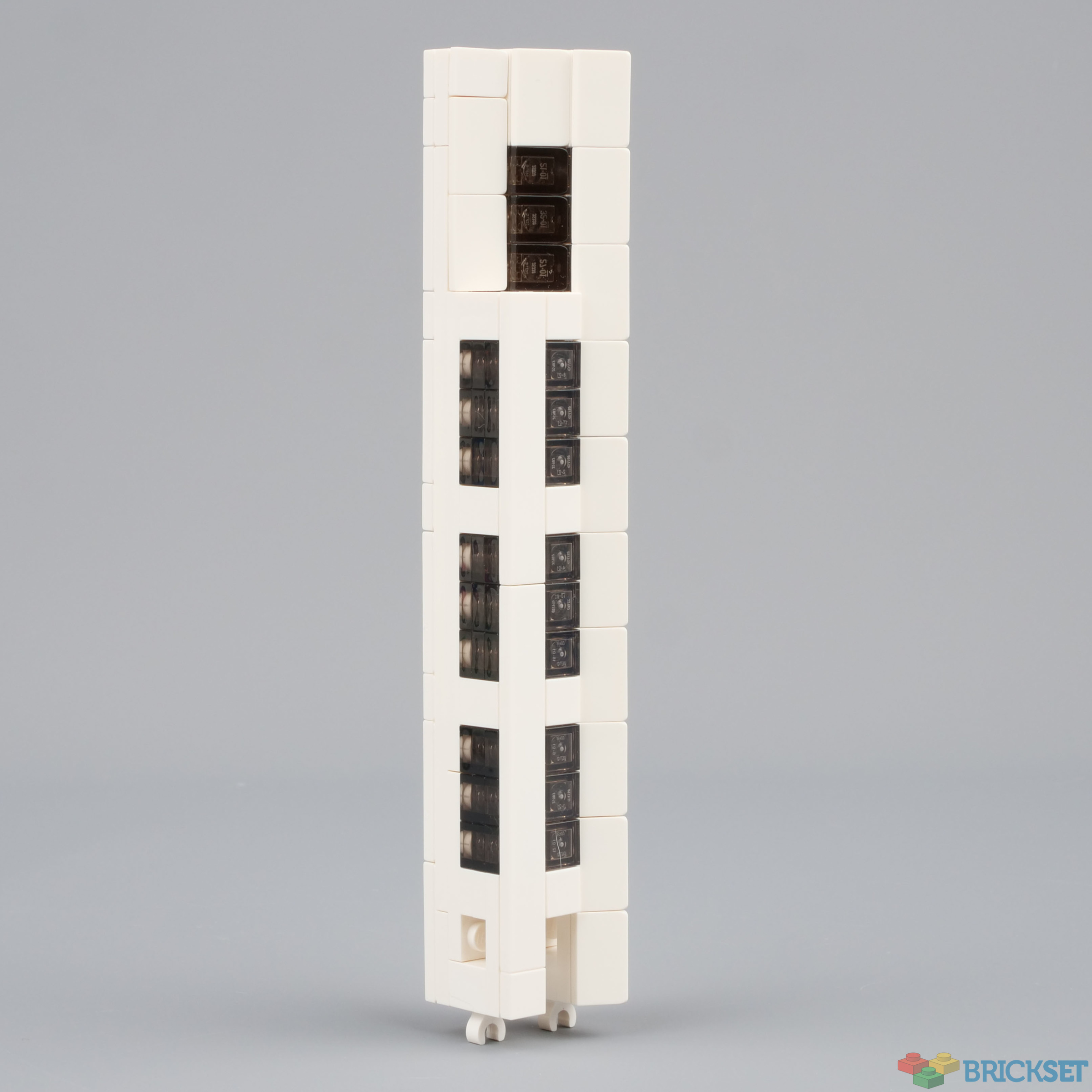 The towers are a difficult shape to replicate in LEGO at this scale, but they look reasonable. Both sides are glass, of course, so it might have been preferable for the back to have been clad in transparent blue tiles too.