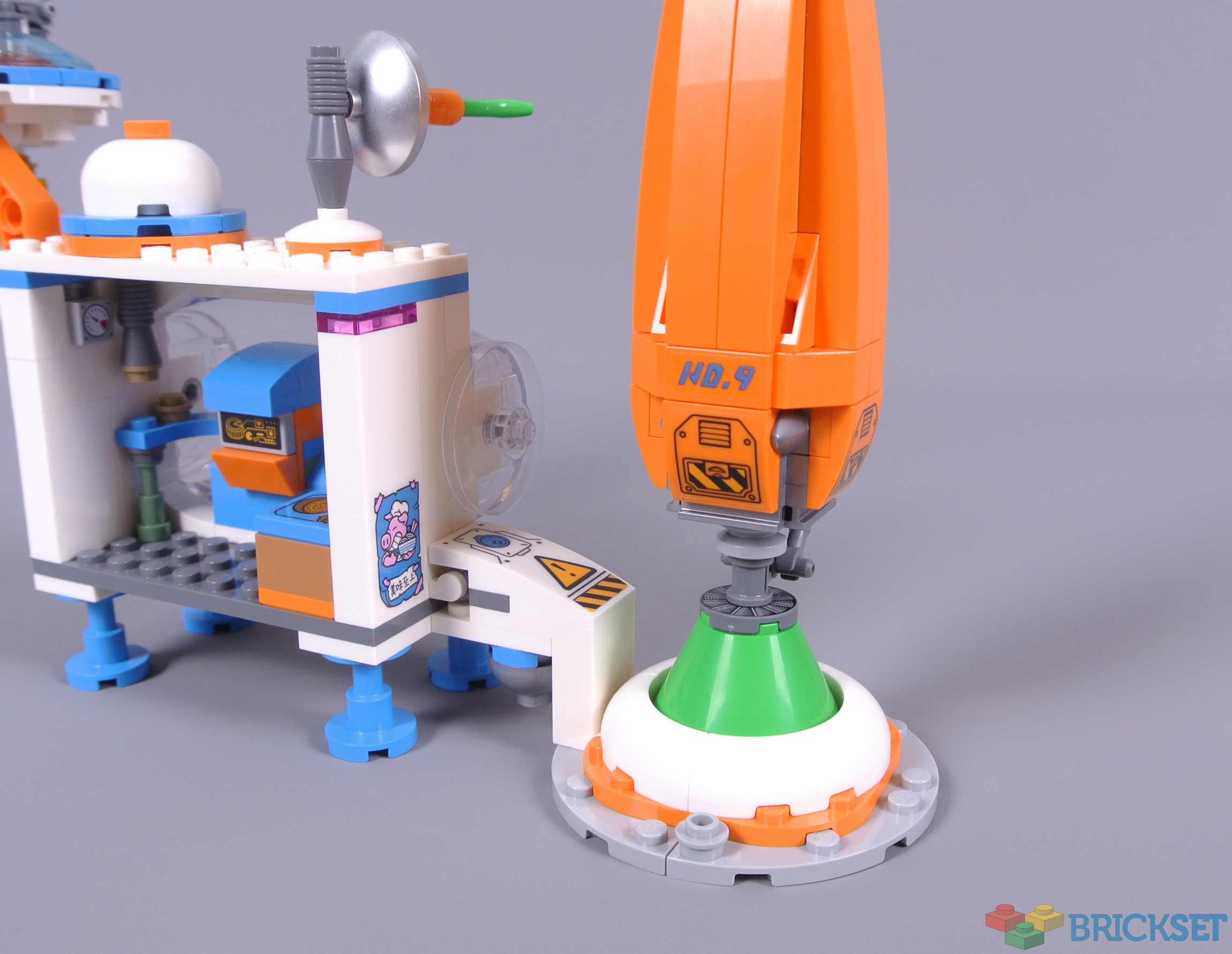 One inevitable challenge involved in manufacturing on the Moon is delivering cakes to Earth! Fortunately, the deliveries are made using an orange rocket, which is designed to resemble a carrot and therefore continues the rabbit influence present throughout this set. The spacecraft measures 17cm in height and slots perfectly into its circular launchpad.