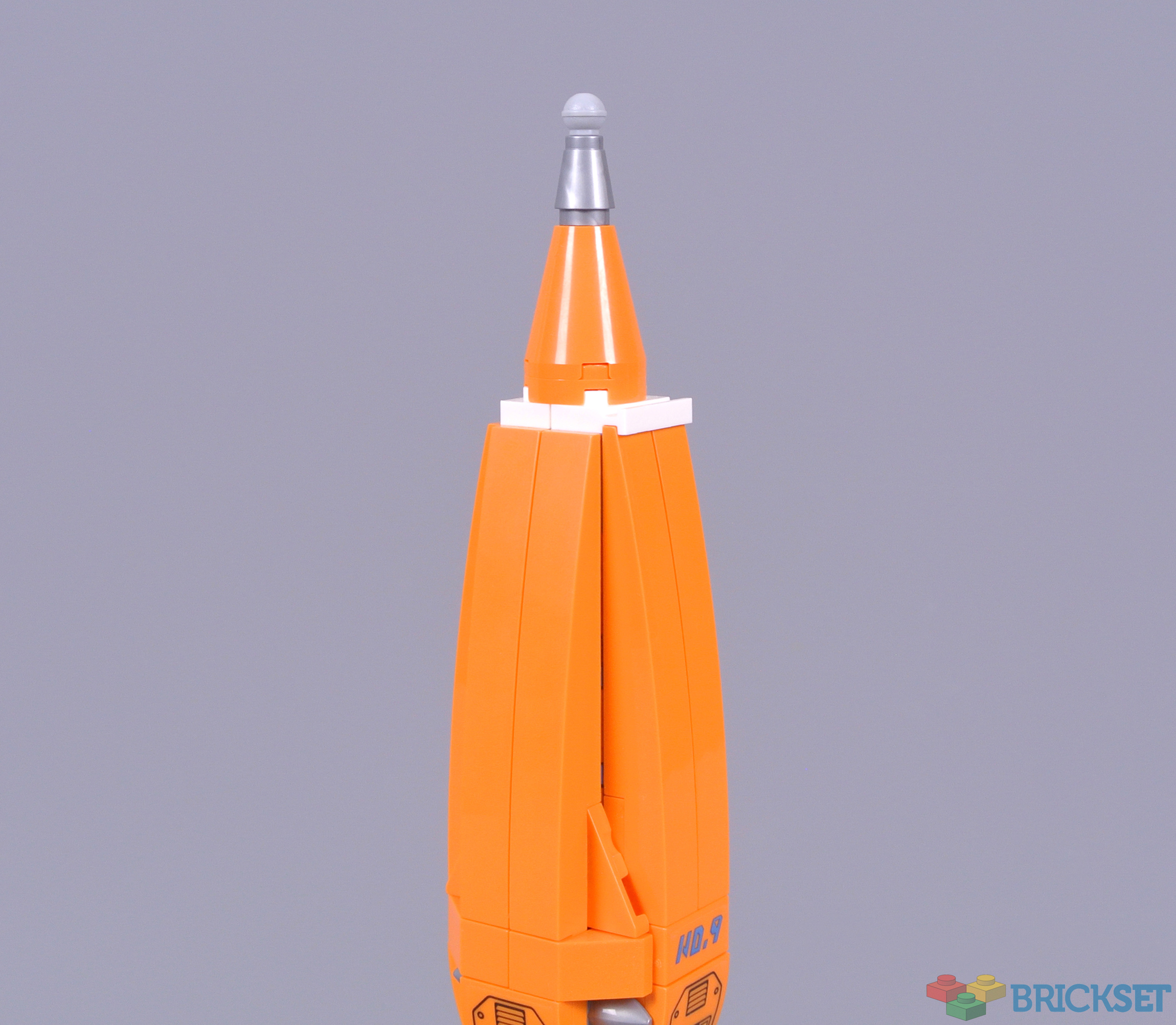 However, my favourite feature of the rocket is also among the most subtle. The opening panel slots seamlessly into a 1x2 plate with side rail on top, forming a basic locking mechanism! This design is incredibly simple but functions perfectly and I cannot recall encountering such a detail before. The light bluish grey microphone mounted on top looks superb as well.