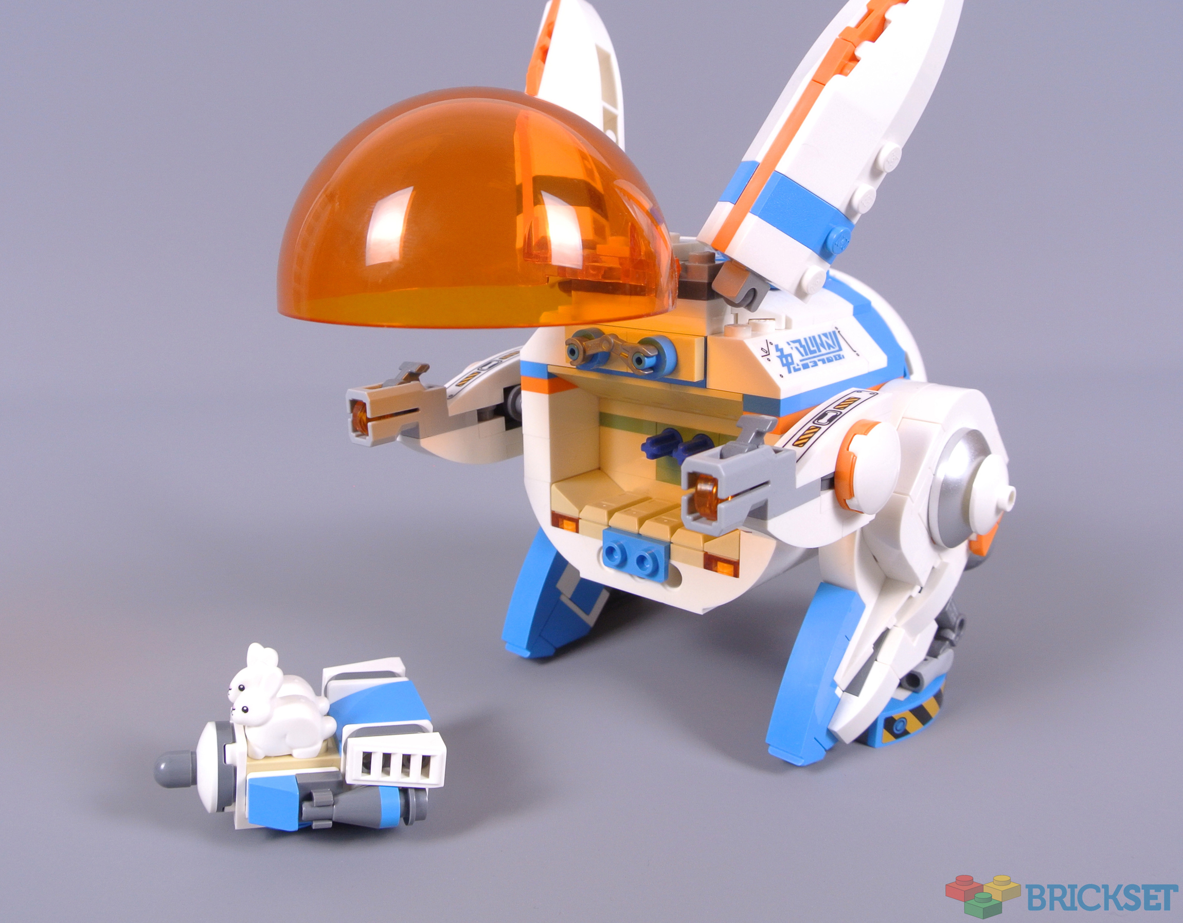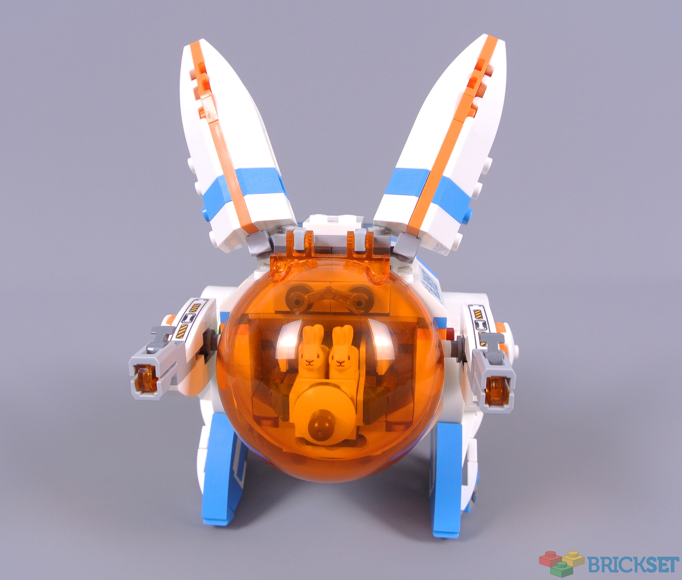 The trans-orange cockpit looks fantastic, clearly displaying the two rabbit pilots inside! These appear delightful together, especially given their stark contrast with the surrounding weaponry. Comparisons have been drawn between this bunny mech and D.Va's mech from 75973 D.Va & Reinhardt and these short arms definitely appear familiar, relative to the earlier model.