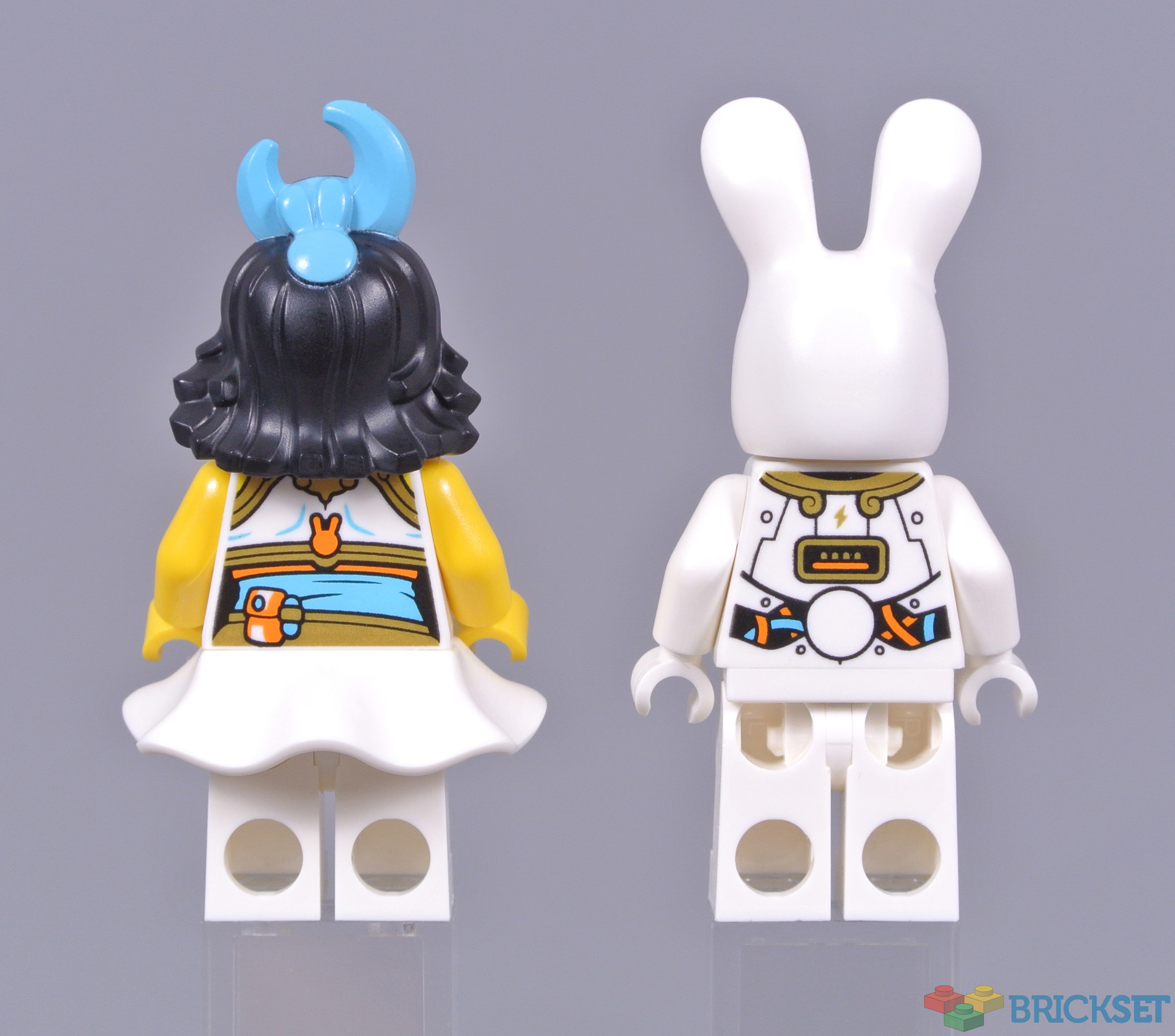 Chang'e is frequently accompanied by the Jade Rabbit in Chinese folklore, doubtless inspiring the outlandish Lunar Rabbit Robot that joins her minifigure! The metallic gold designs and colourful wiring on this robot therefore match Chang'e, while the character's digital face is cleverly pixelated underneath bunny headgear and appears very friendly.