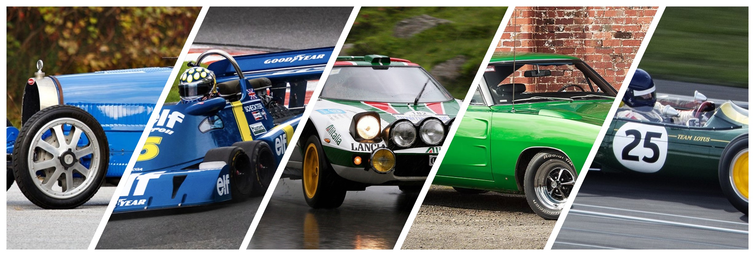 Tyrell P34 as a classics F1 + Stratos HF as classic rally + Shelby AC Cobra as classic roadster