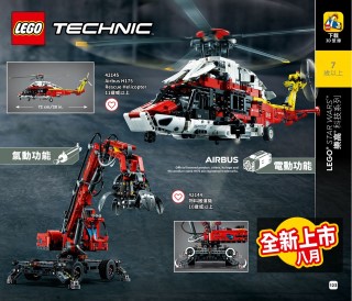 The page shows 42144 Material Handler and 42145 Airbus H175 Rescue Helicopter. Let's hope the latter is used for civil operations, otherwise we may have another Osprey fiasco at the last minute!