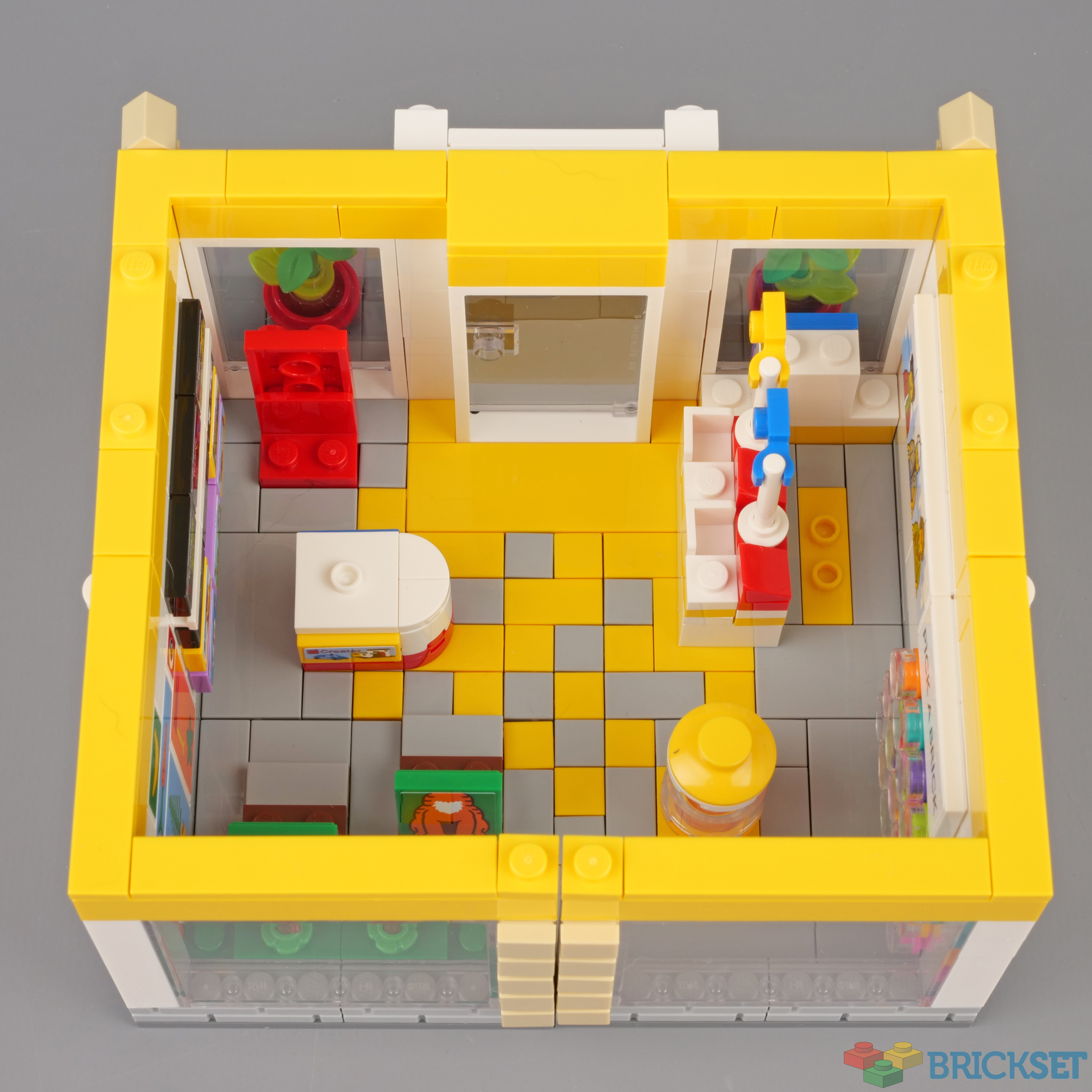 This then allows access to the interior, which includes all the usual features found in models of LEGO stores: sets on shelves, pick-a-brick wall, display models in the windows and the counter.