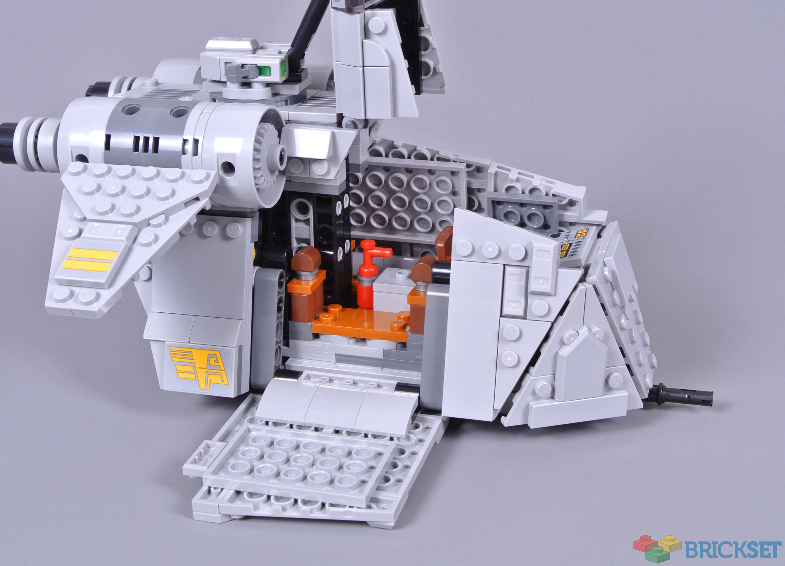 The troop compartment is similarly accessible and contains four seats, again featuring reddish brown elements to match the cockpit. The dark orange highlights are also appealing and some accessories are stored between the seats. I would rather this light bluish grey box had featured the same Imperial insignia as those found elsewhere though.