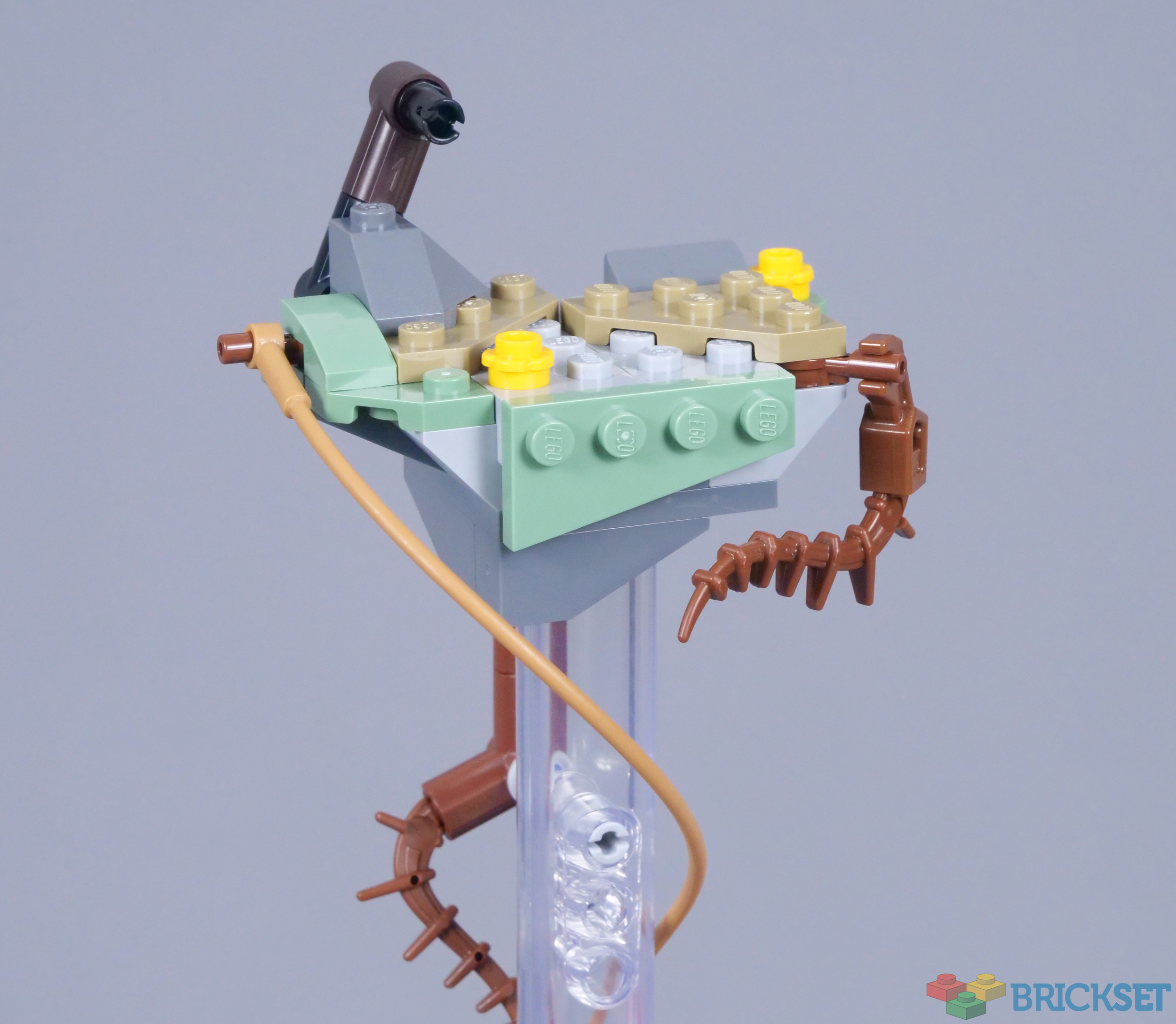While obviously tiny, the organic shape of this floating mountain corresponds with the onscreen location and I like the medium nougat flexible tube wrapped around the support. The addition of reddish brown roots and sand green accents also works well, but I dislike the Technic pin, which seems rather conspicuous.