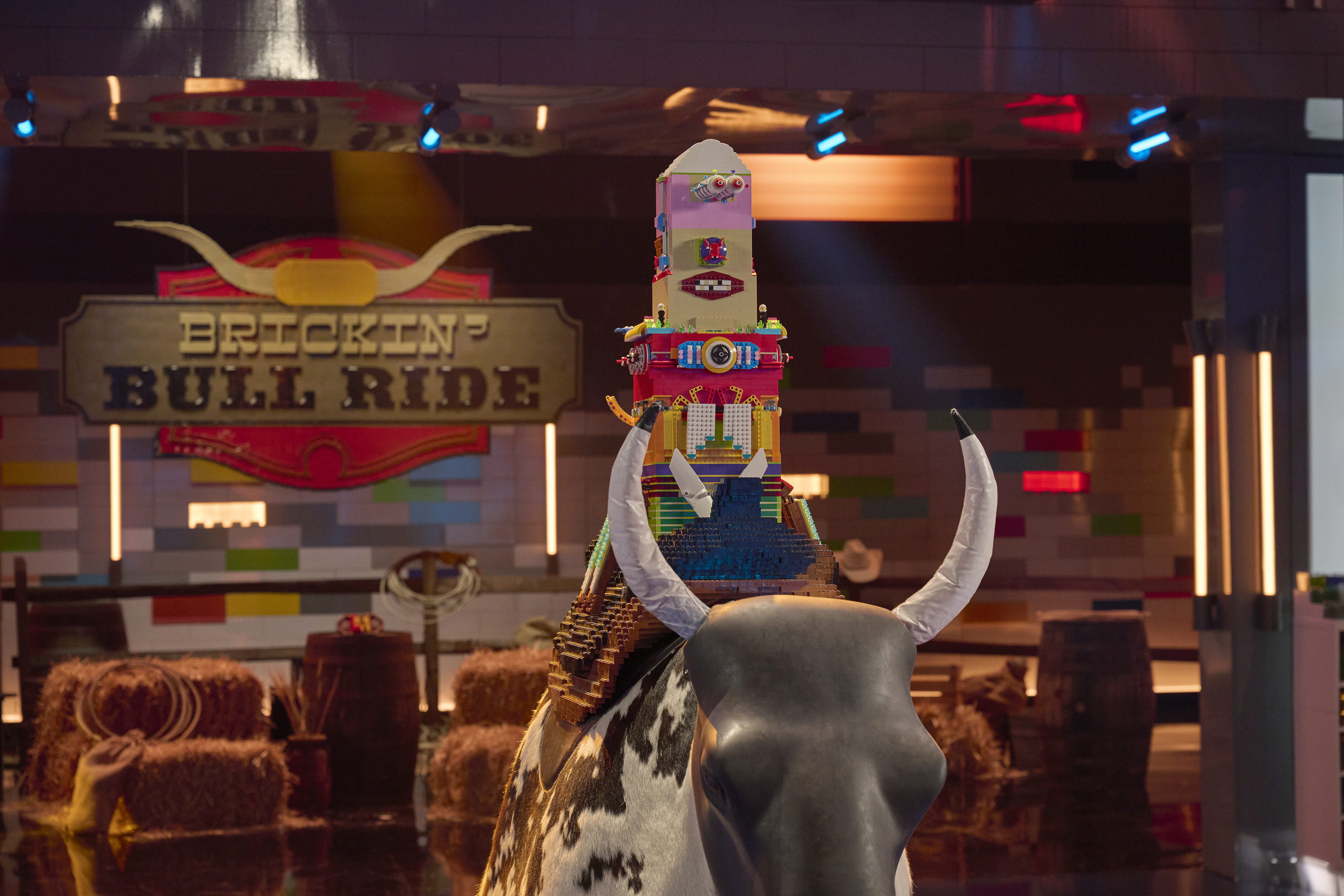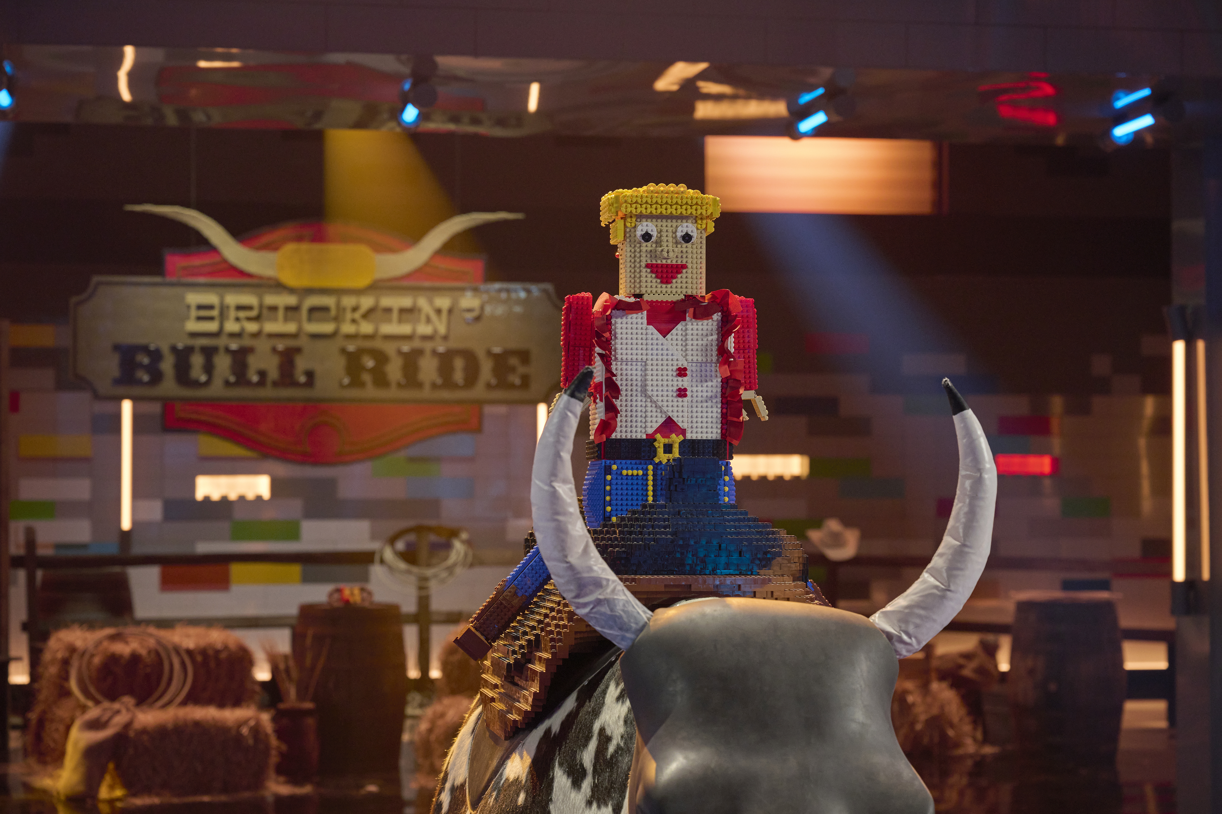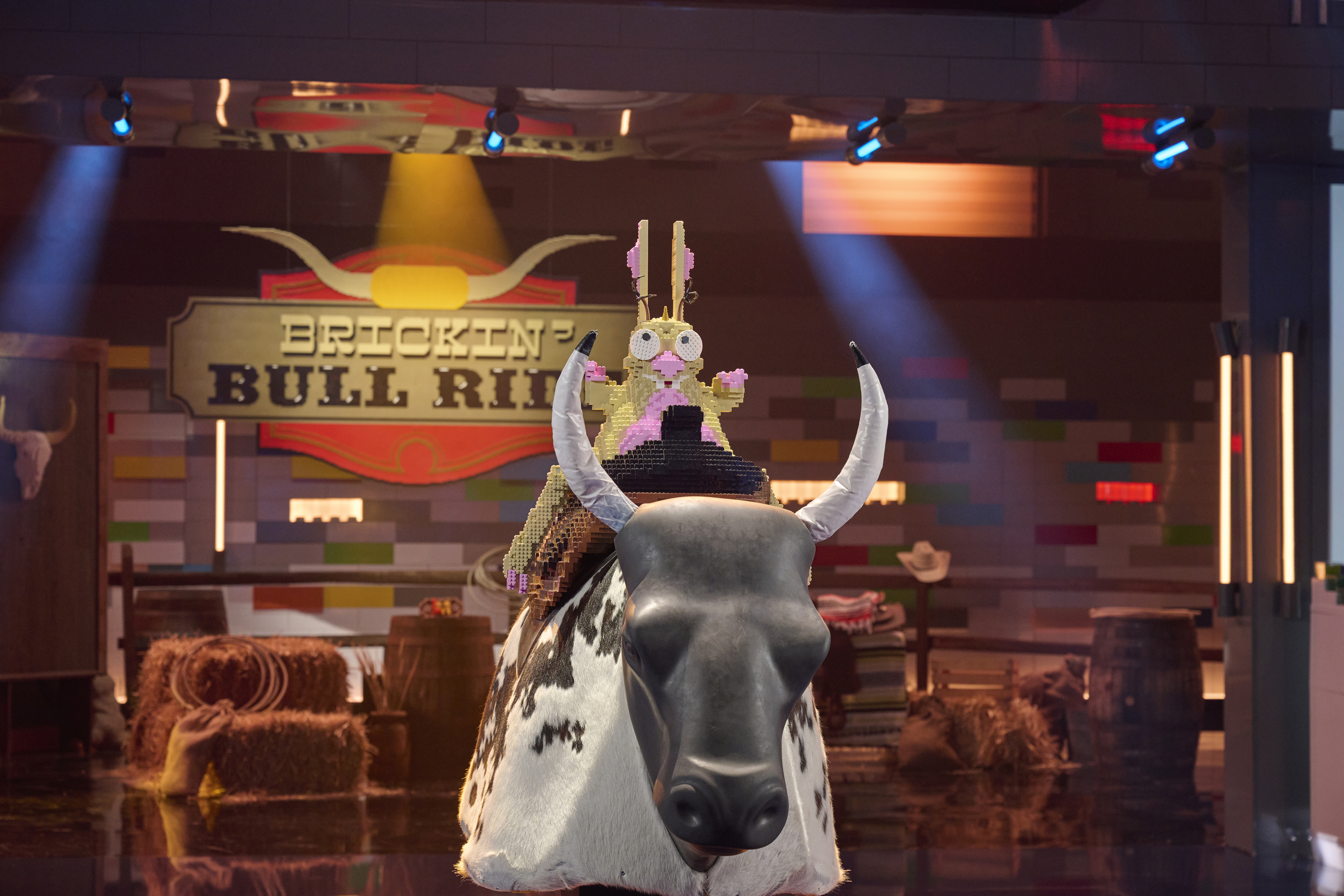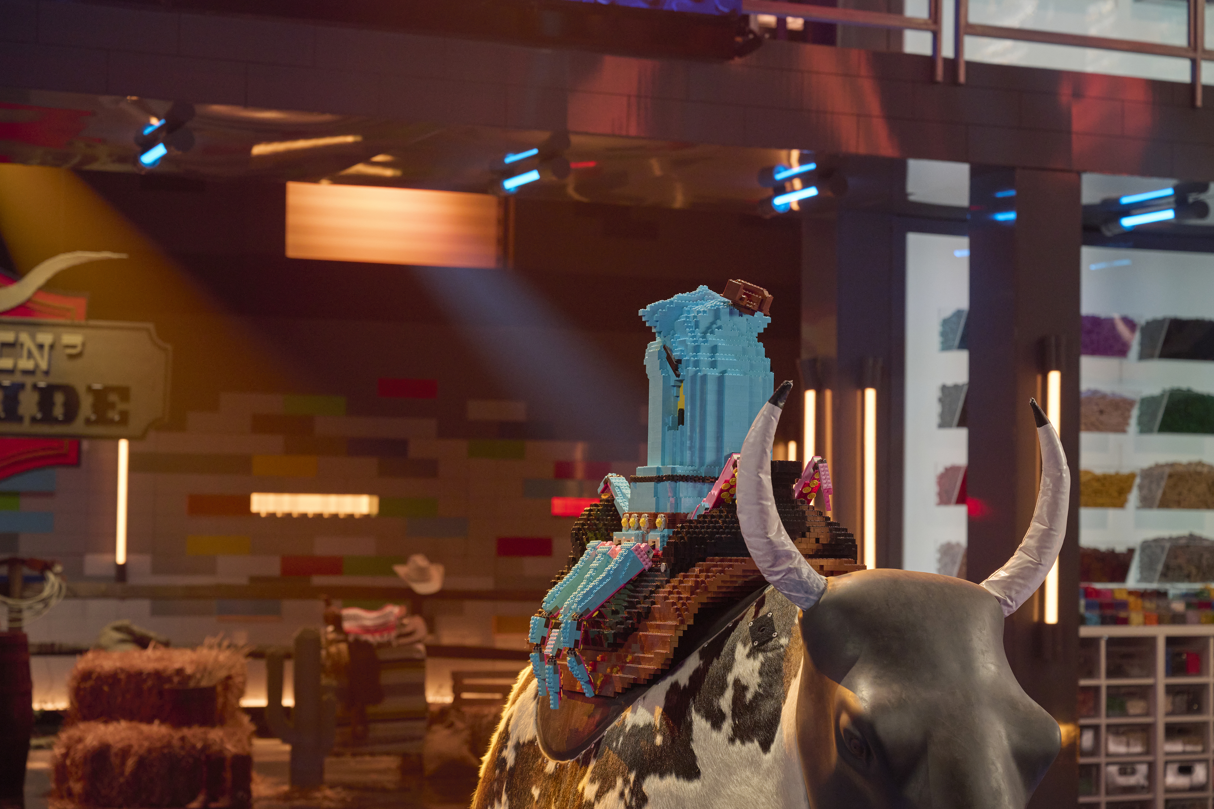 The mother/son team of Emily and Liam won the challenge for the second consecutive week, and this time, it netted them the golden brick, which was introduced for the first time this season. Their build was an adorable jackalope that made it through all of the bull's gyrations.