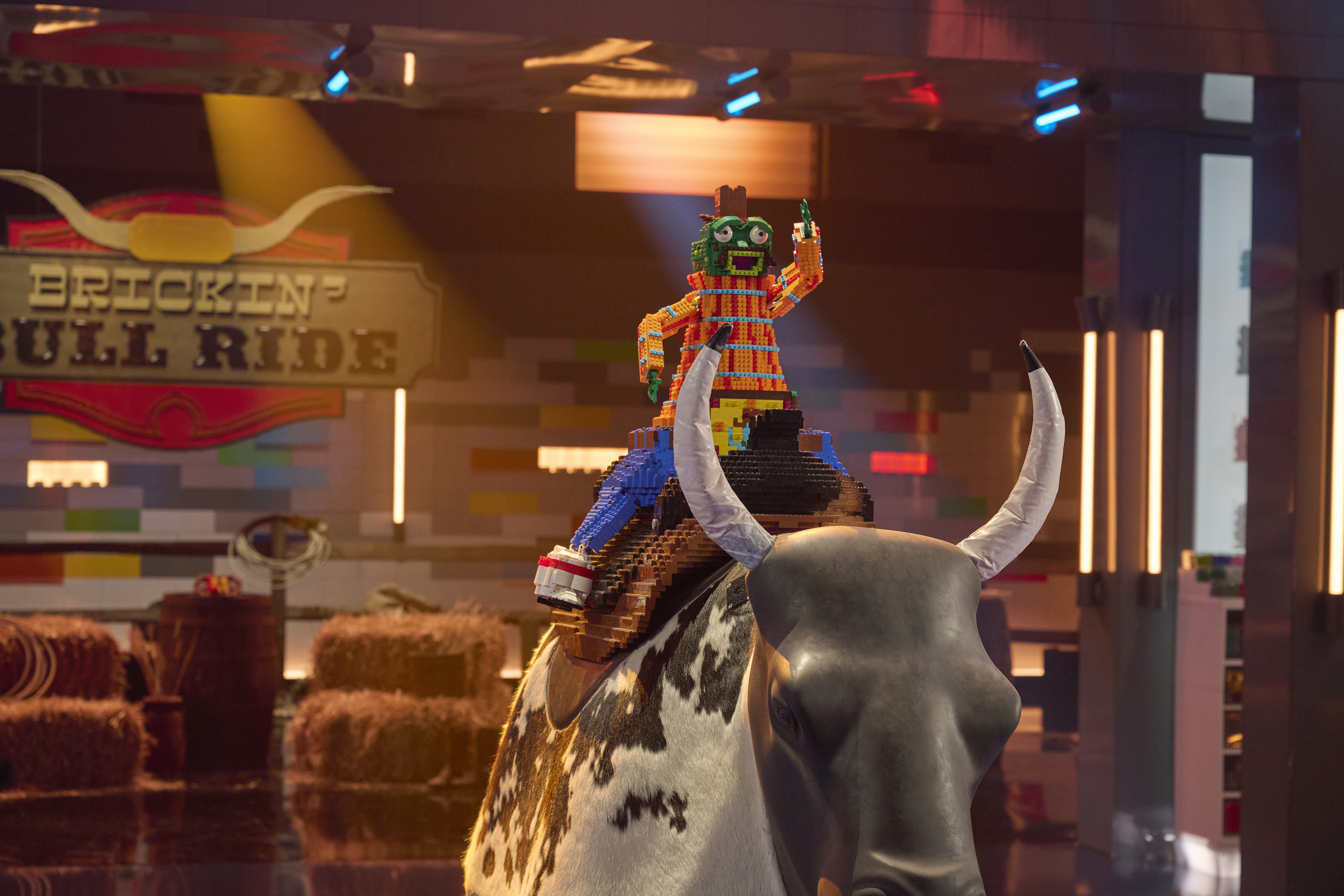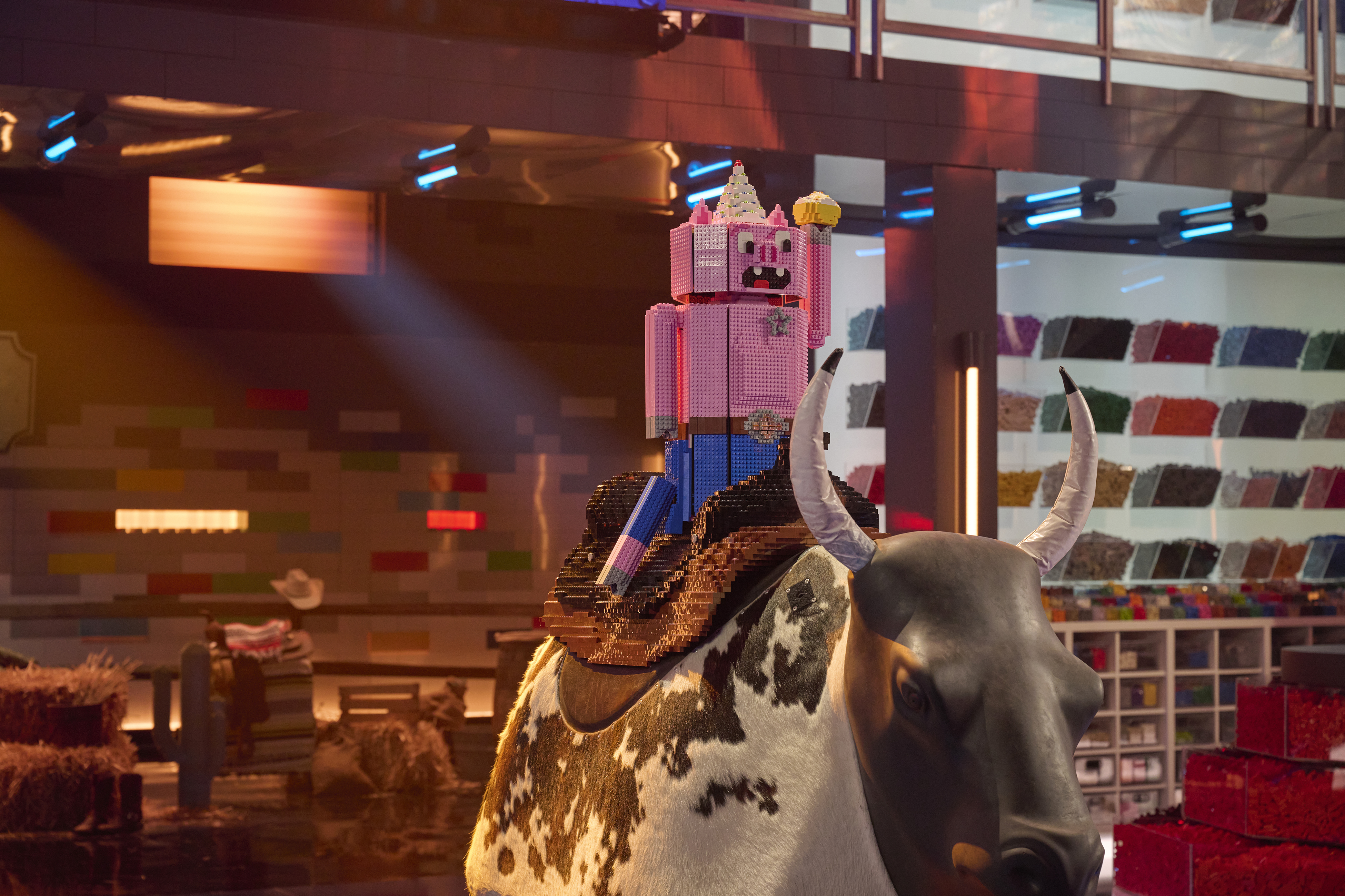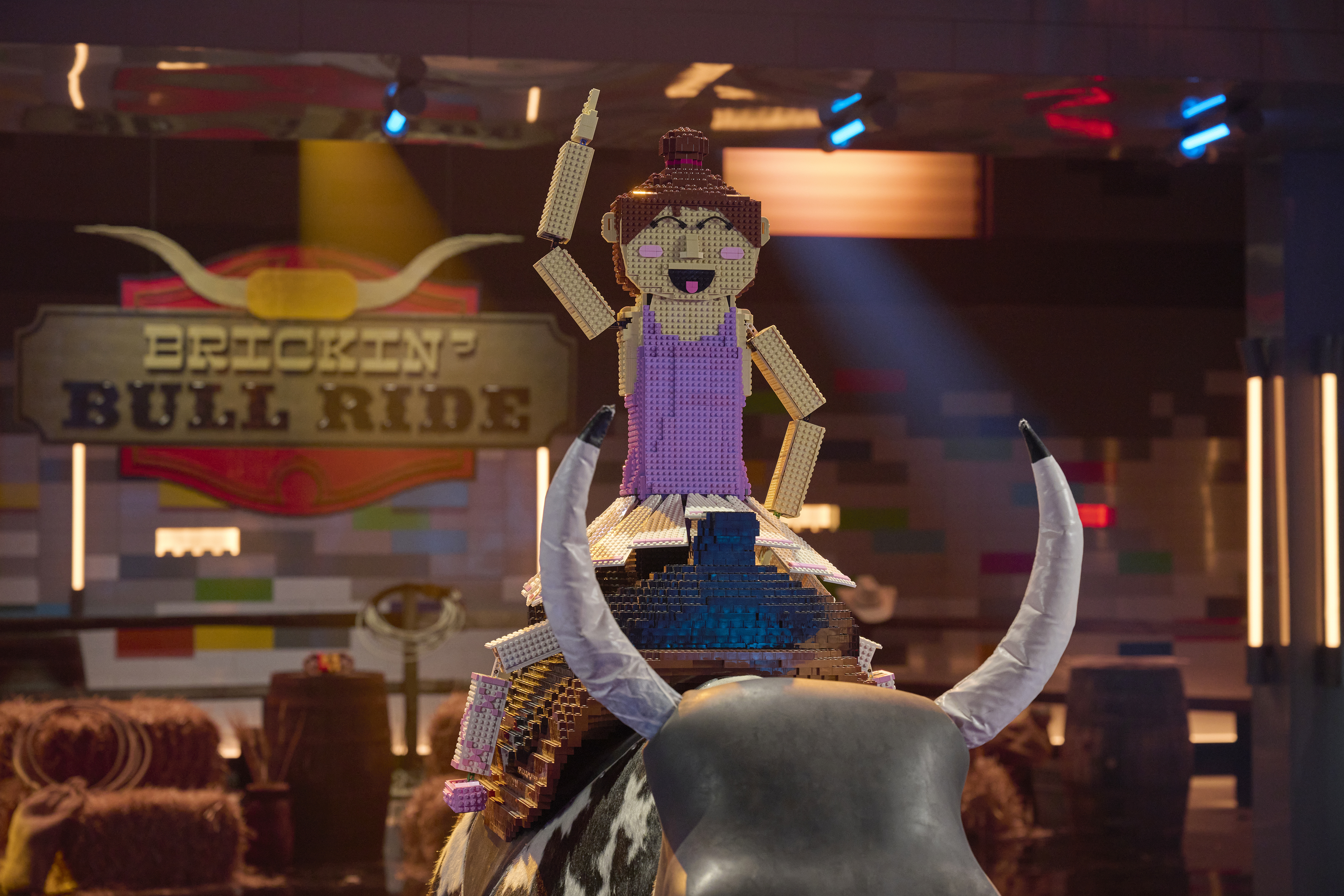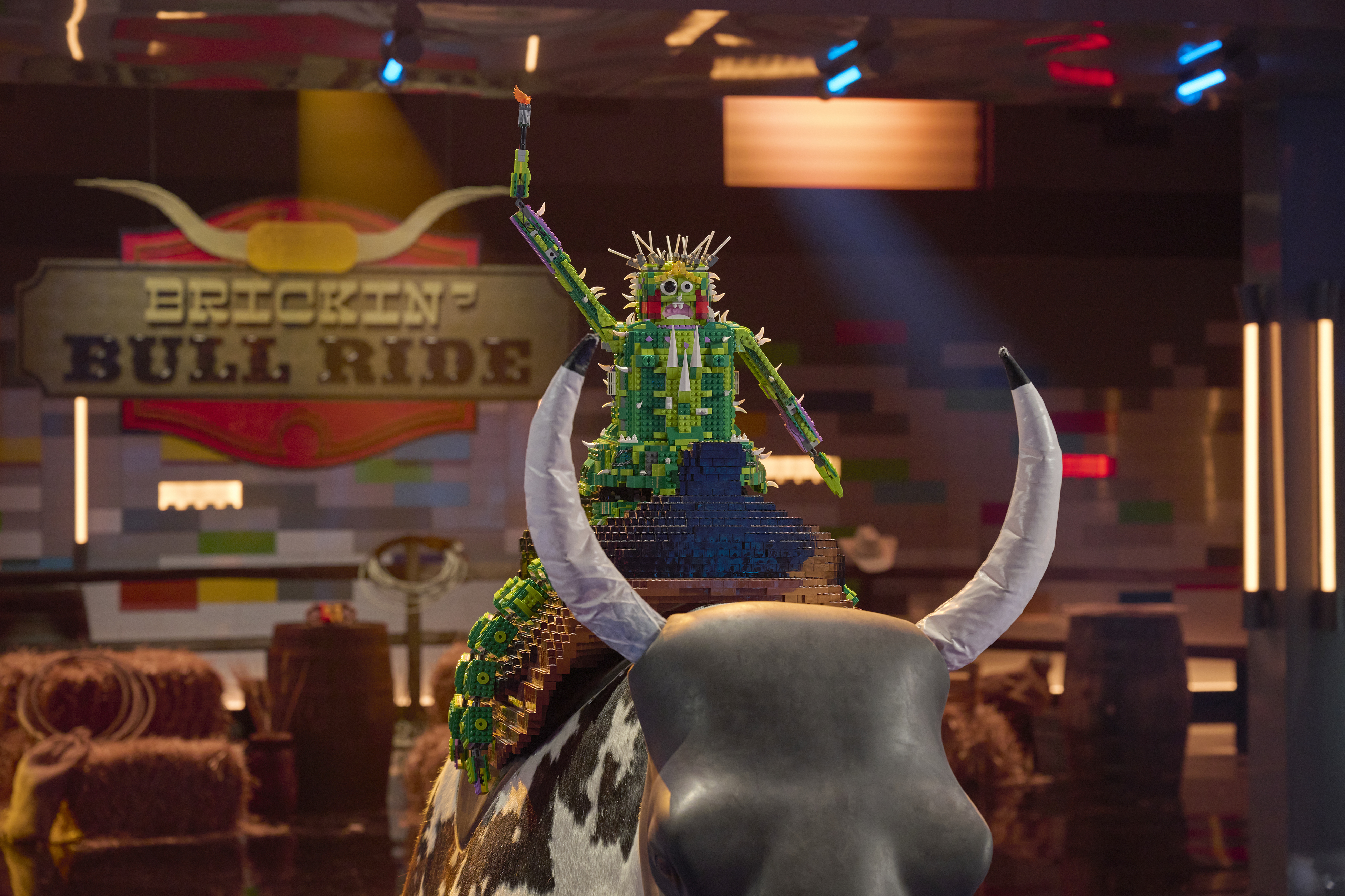 The mother/son team of Emily and Liam won the challenge for the second consecutive week, and this time, it netted them the golden brick, which was introduced for the first time this season. Their build was an adorable jackalope that made it through all of the bull's gyrations.