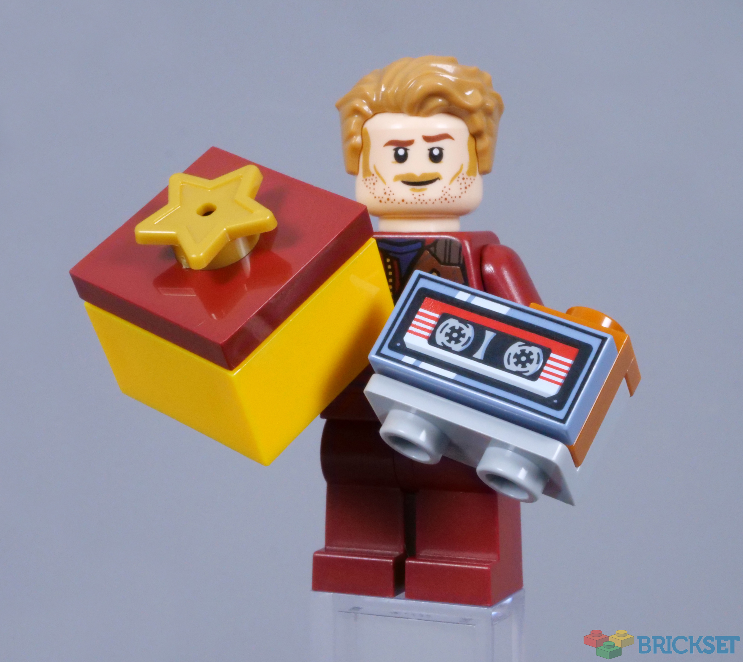 Of course, Peter would never leave for adventure without his Walkman, so the accessory arrives today. This intricate assembly includes an exclusive printed 1x2 tile, featuring an Awesome Mix cassette, which looks superb. The brackets are seemingly intended to form buttons and dials on the sides, although the accessory becomes rather bulky with them.