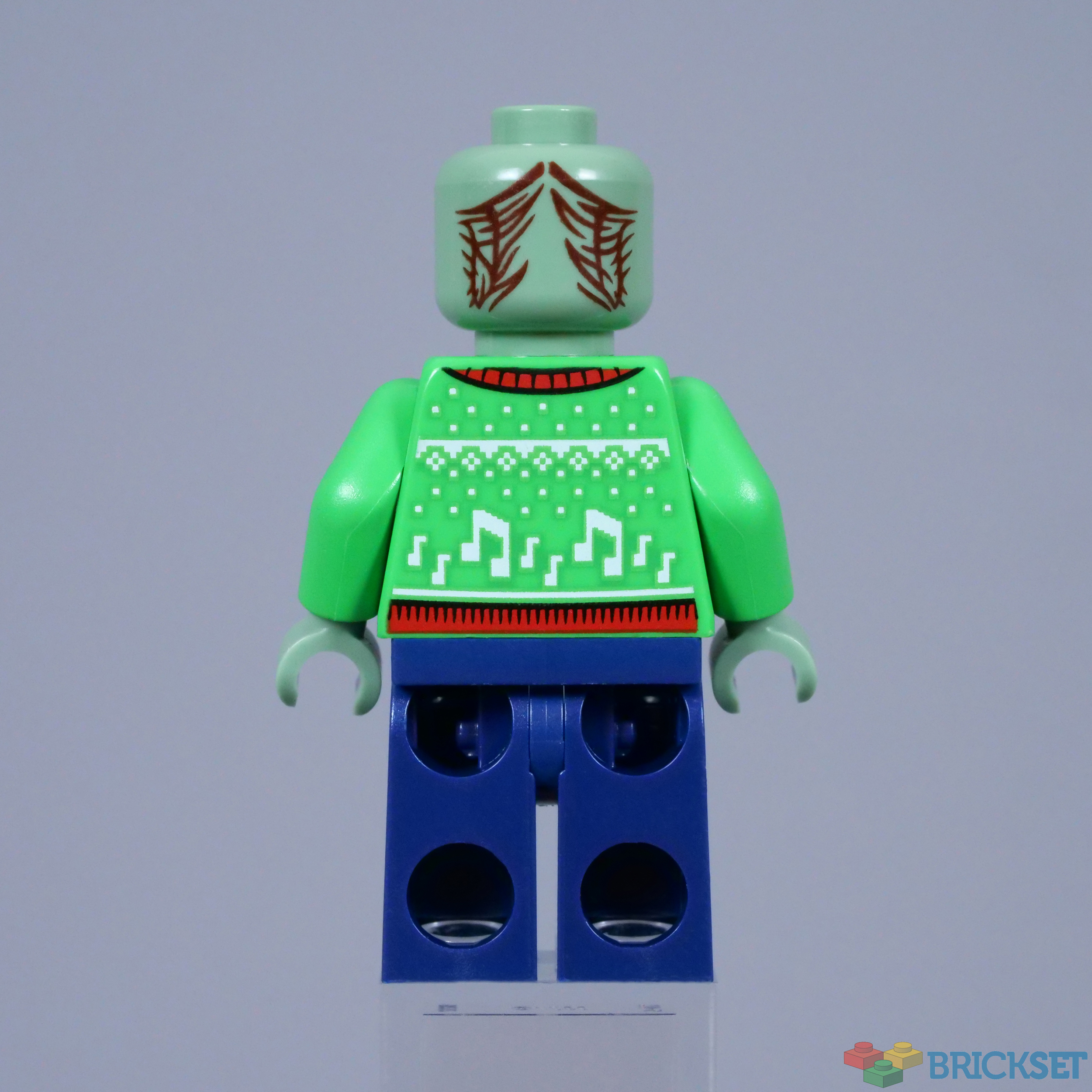 Drax at last arrives today, thus completing the current Guardians of the Galaxy team. Similar to Nebula from day nine, the minifigure wears a detailed Christmas jumper and this one features a dancing Baby Groot, flanked by musical notes. As always, I love the blocky designs that capture the knitted aesthetic associated with Christmas jumpers.