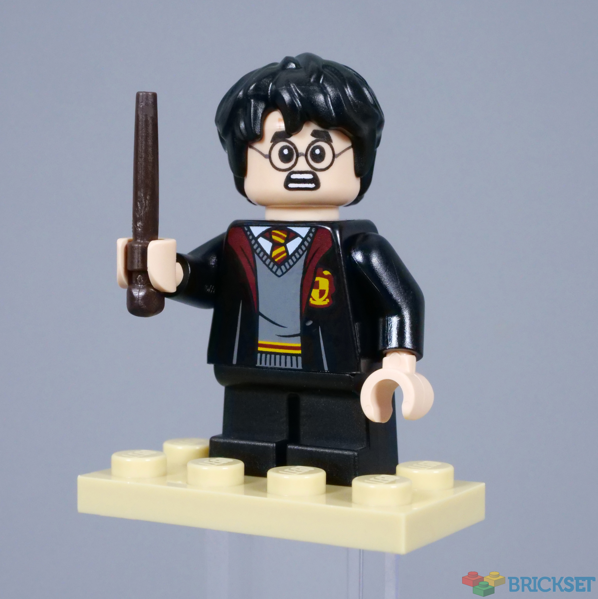 As always, Harry includes a dark brown wand. The minifigure also stands on a tan 2x4 plate, so corresponds with Ollivander's and the Quidditch goalposts from days one and two.