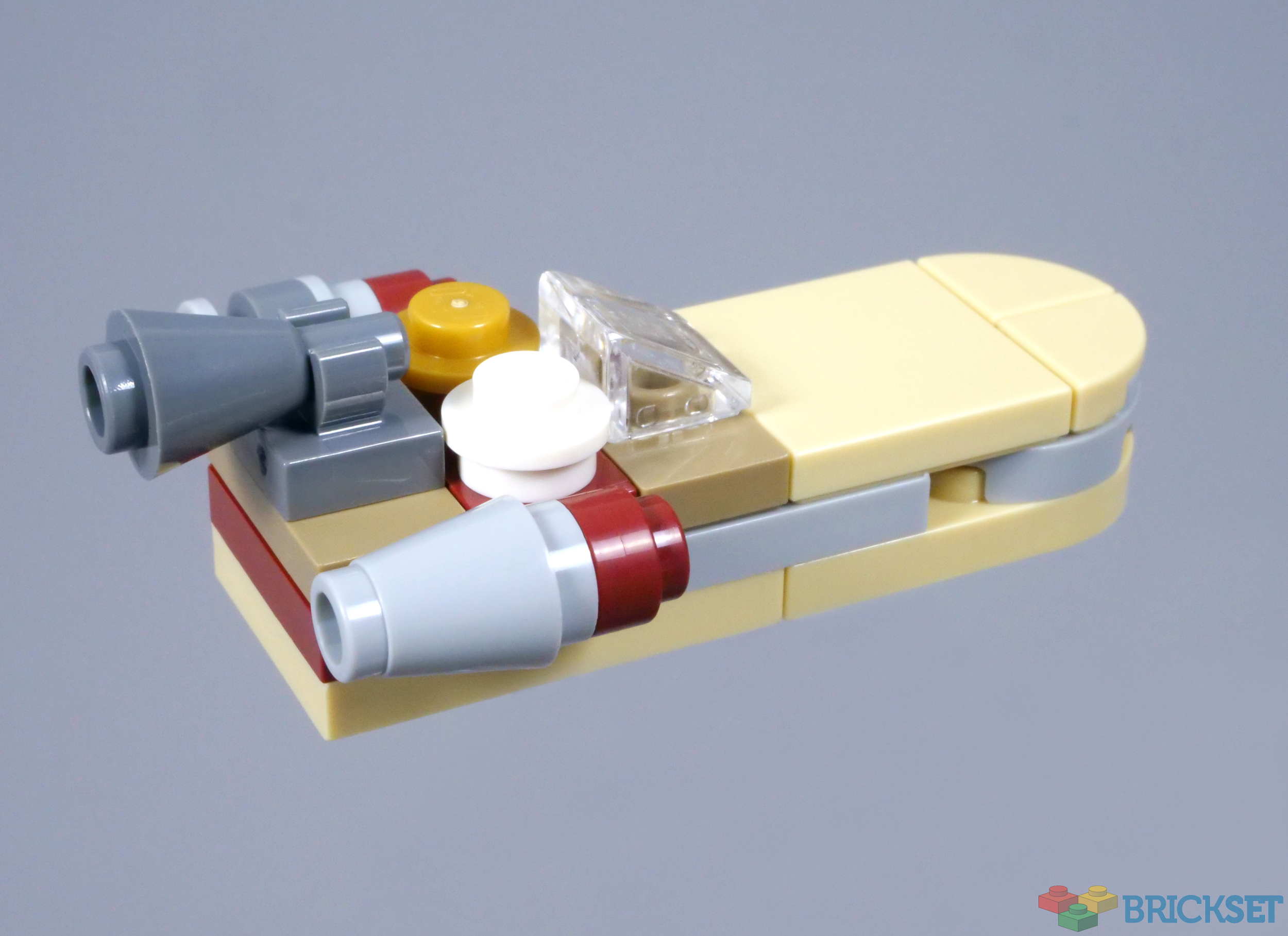 Additionally, the engine assembly is much stronger, the windscreen is narrower and there are even two 1x1 round plates in the cockpit, representing Luke and C-3PO in their search for R2-D2. I did like the dark red band present on previous iterations of the landspeeder, but using tan elements around the bottom is definitely more accurate.