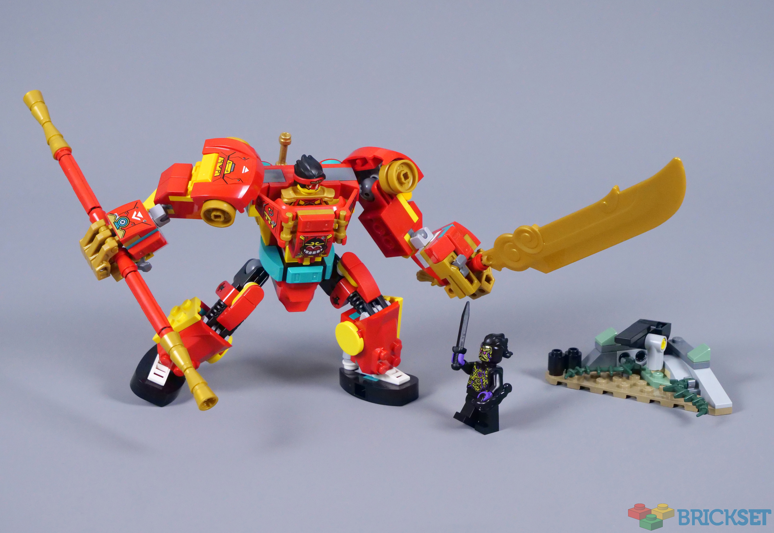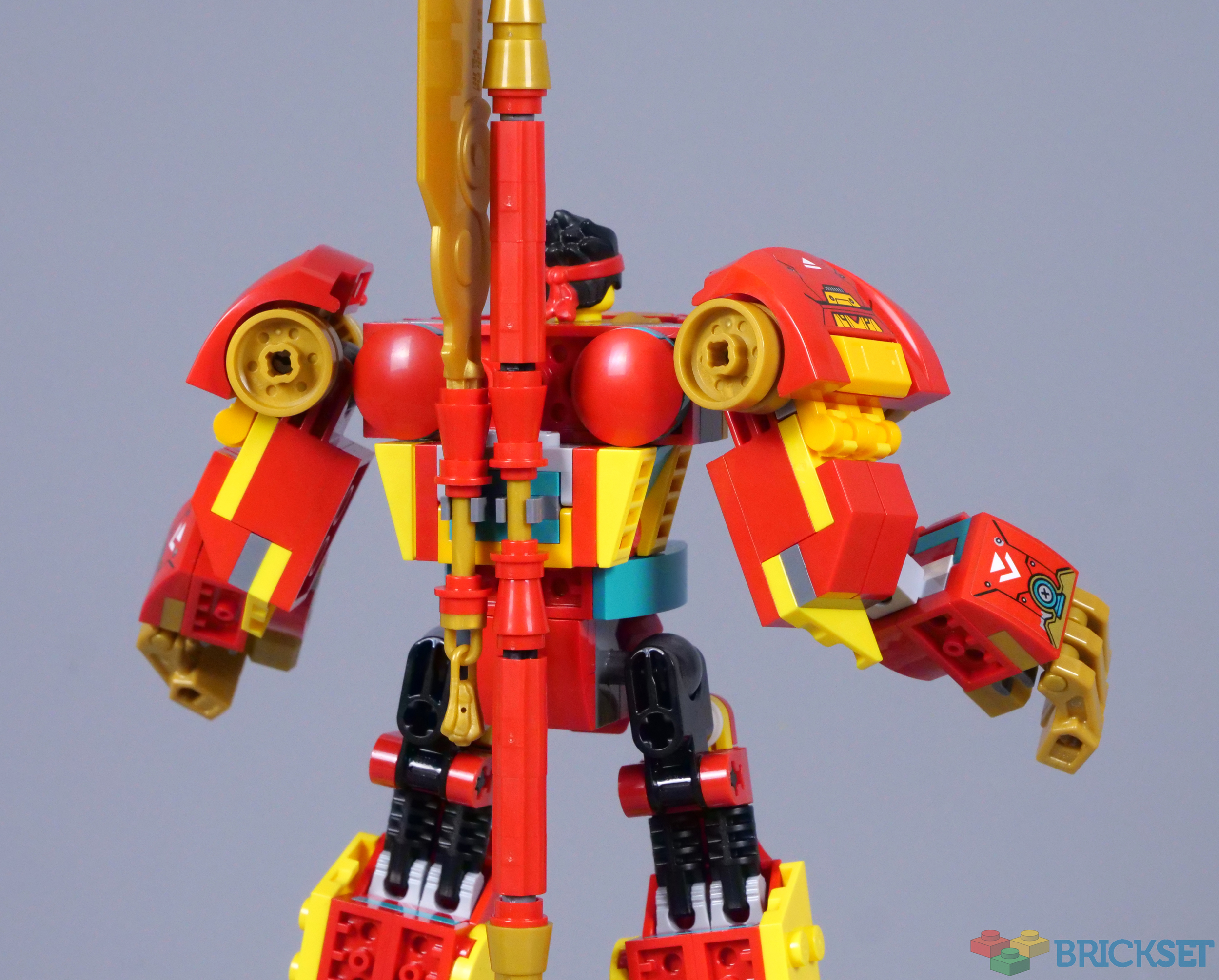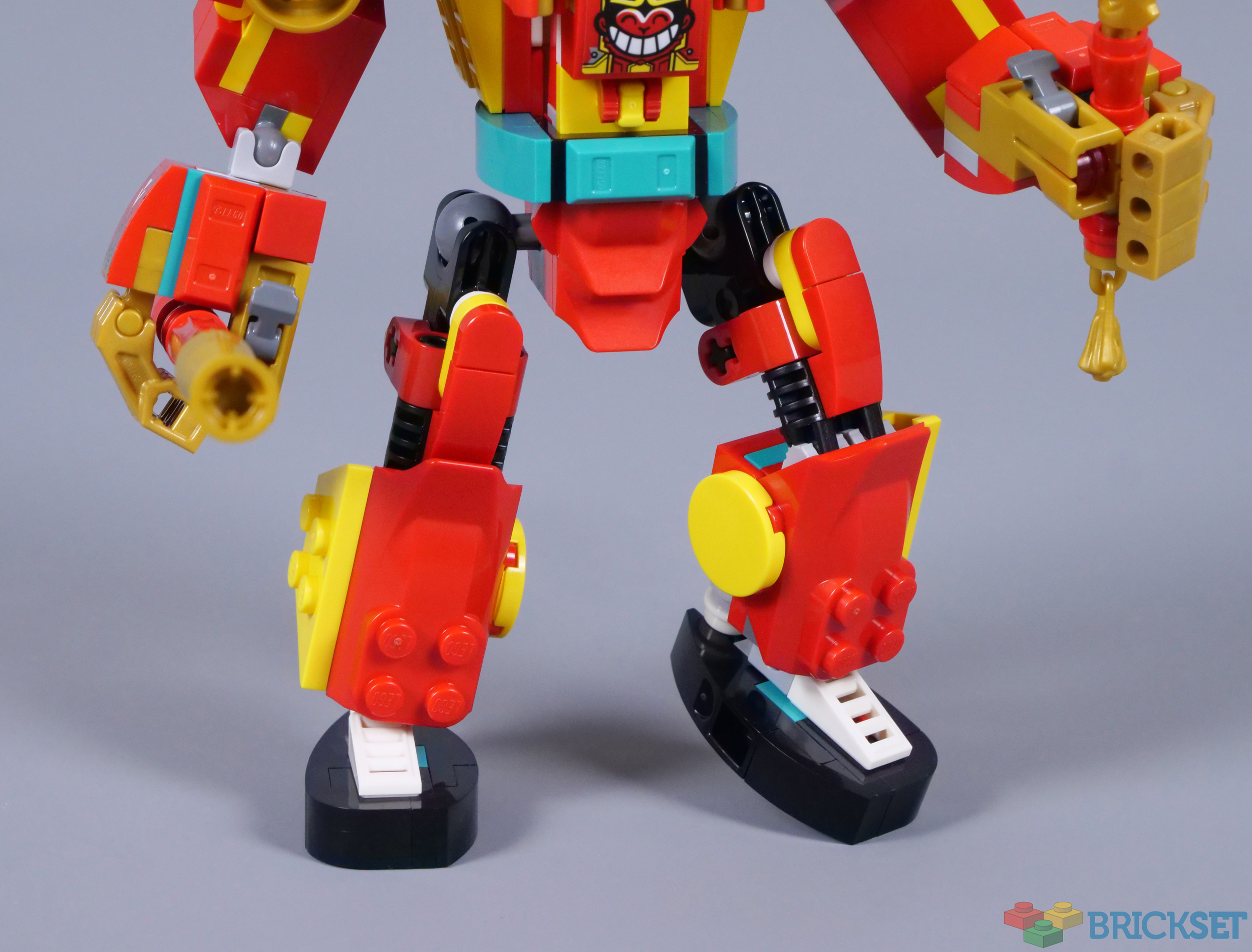 Monkie Kid has already piloted several mechs in the three years since this theme was launched and the latest example is familiar. The red, flame yellowish orange and teal colours are shared with previous models while the height of nearly 14cm is close to Monkie Kid's mech from 80028 The Bone Demon. However, this design is much more elaborate and altogether better.