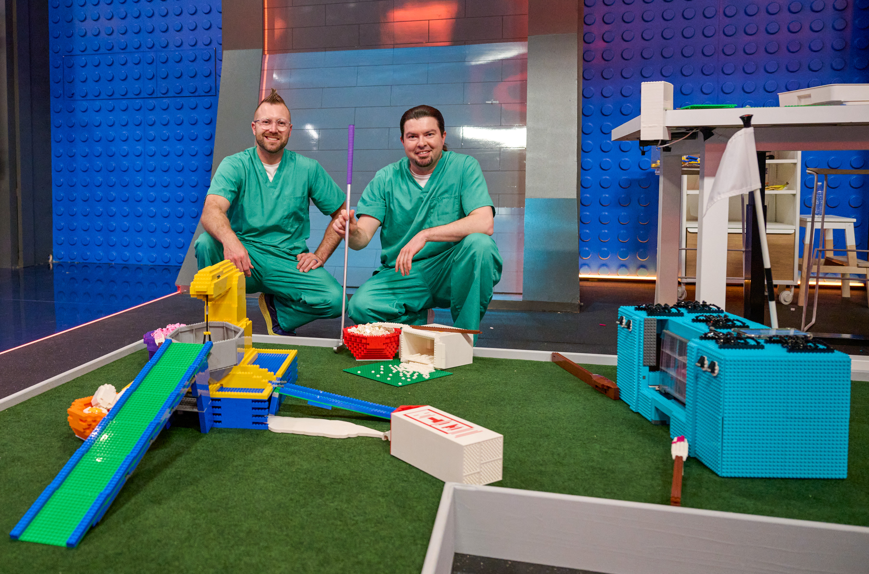 Austin: Our spaceship, the inside of the spaceship a had rock climbing wall. We had a robot who's moving giant medicinal items around the back. They were like tongue depressors and pill bottles. None of that made it in. The thing that also was interesting is how they shot the angle of our builds. Sometimes we built it thinking that the camera would be in one particular location. And then they're like, no, no, we're shooting it from this side and like, oh, we can't see half of our build. So that was kind of an interesting part of building slash production. The magmen were awesome. The castle - the fighting between the two wizards. There's so much wizard spell action going on back and forth that I guess they showed in pictures but didn't really describe it on air. But there's only so much time within the show. Right? And you can't just focus on us the whole time even though they should.