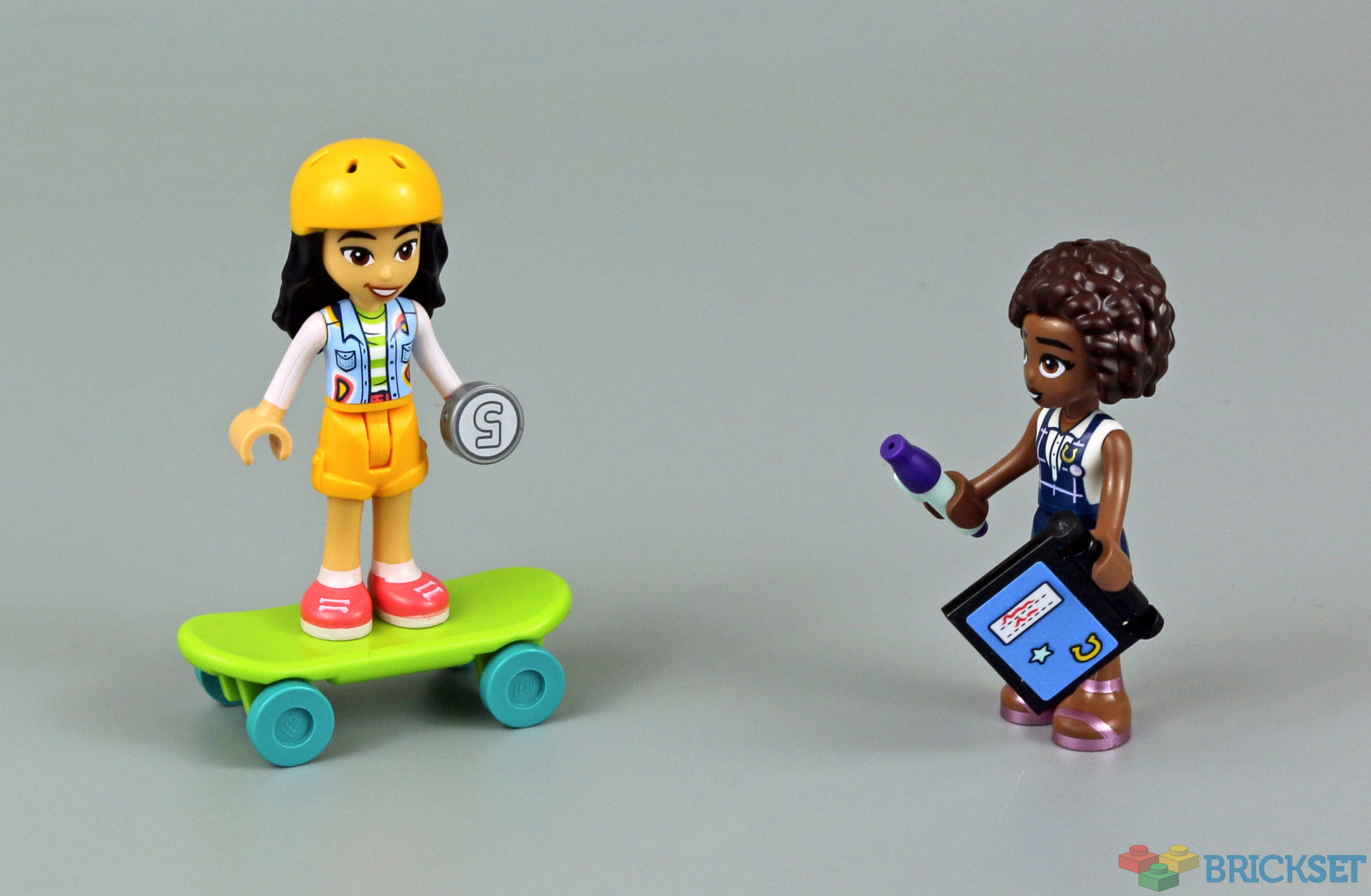 The minidolls come with some accessories - Liann is getting around town on a skateboard and a helmet that is colour coordinated with her shorts. Aliya looks like she could be on her lunch break with her pen and tablet.