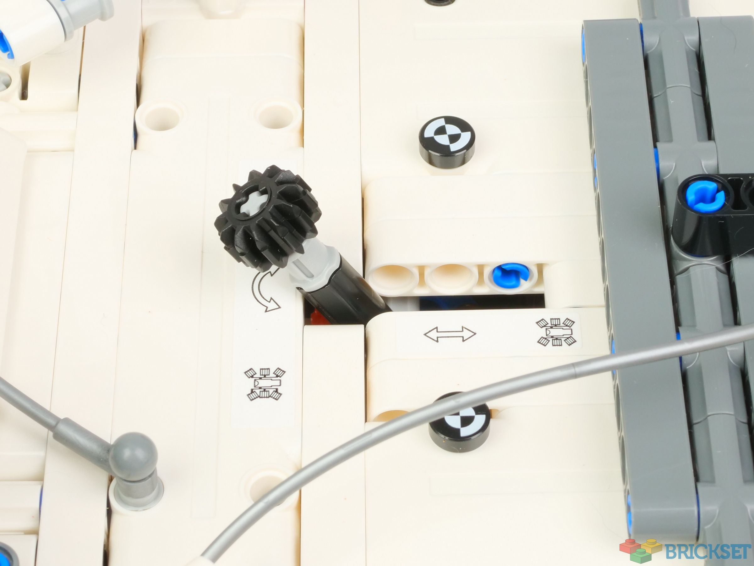 The operation of the arm seems a bit half-hearted, and it might have been better had it all just been implemented using click hinges rather than the hybrid arrangement that we have now, although I concede that that would not be very Technic-like.