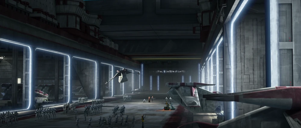 They could have incorporated the top side hangar doors opening, revealing the fighter and gunships bays down below. https://static.wikia.nocookie.net/starwars/images/4/4b/VenatorHangar-OFNF.png/revision/latest/scale-to-width-down/1000?cb=20210714050006