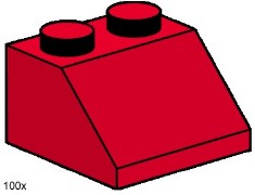 100 | Bright Red | Bricks | 3039 | ROOF TILE 2X2/45° | 311 | 1990 | 3621 | 1986 |