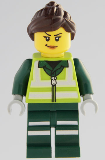 CTY1958: Coast Guard City - Female, Reddish Orange Jacket with Pockets and Reflective Stripes, Dark Blue Legs with Pockets and Reflective Stripes, Dark Brown Bob Cut Hair