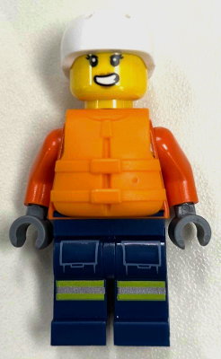 CTY1962: Coast Guard City - Female, Reddish Orange Jacket with Pockets and Reflective Stripes, Dark Blue Legs with Reflective Stripes, Orange Life Jacket White Sports Helmet