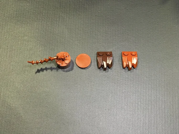 There are three different (four if we consider difference in colour) component combinations of LEGO parts used for the potting materials from the photo above. Two of the components on the right-hand side are the claws that used on retired LEGO Nexo Knights theme sets.