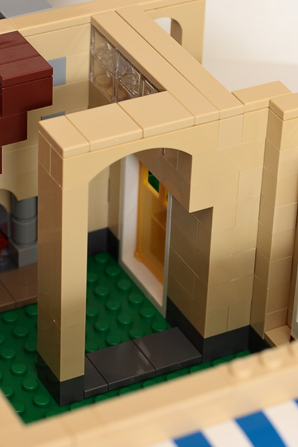 Having already built the 4956 House, two 4996 Beach Houses, 5891 Apple Tree and the 8403 City House, the Family Home was a familiar build. The unique build technique for this set was the slightly inset windows and the porch lamp. The arched window with the art deco glass blocks above the doorway is a nice touch.